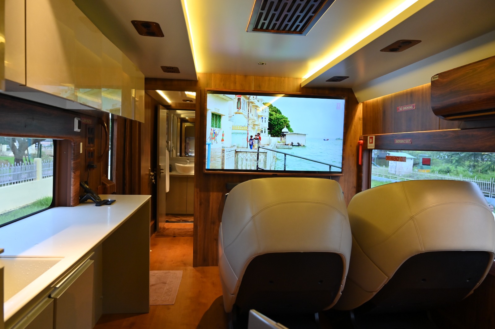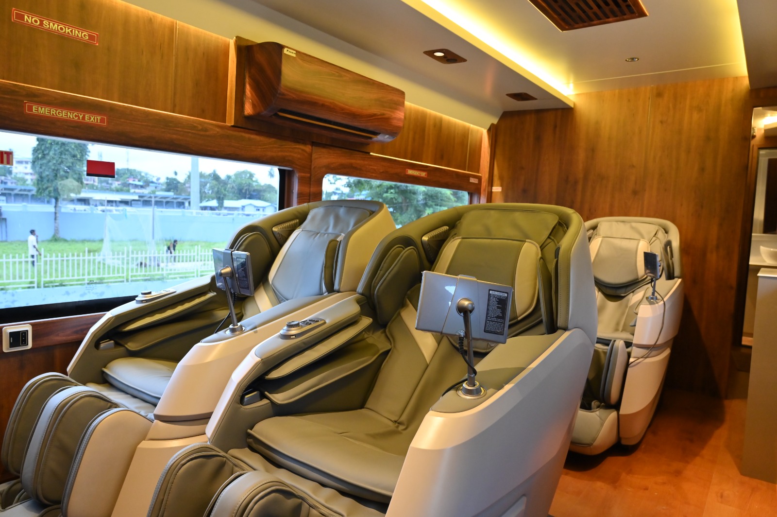 - Luxury on Wheels – Fully furnished caravan with cozy bedrooms, massage chairs, and luxury interiors.